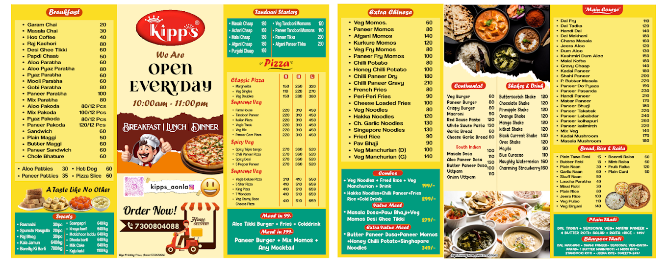 Kipps is one of the most popular food destinations in Aonla for Chinese dishes, momos, pizza and sweets. People love its taste consistency, clean AC seating and fast service.